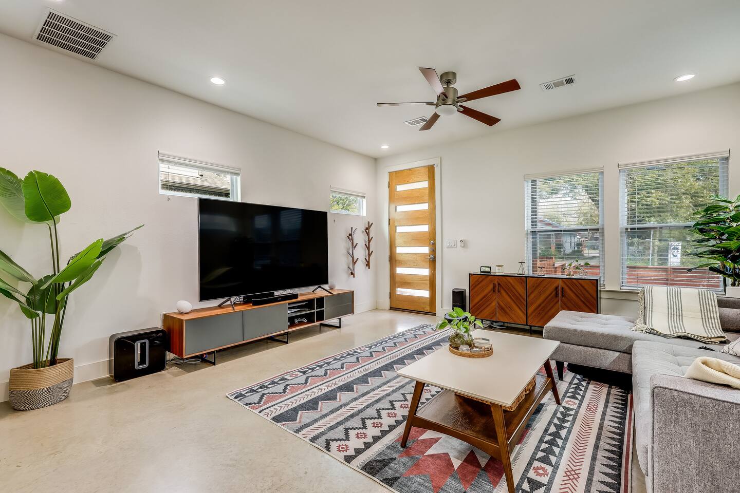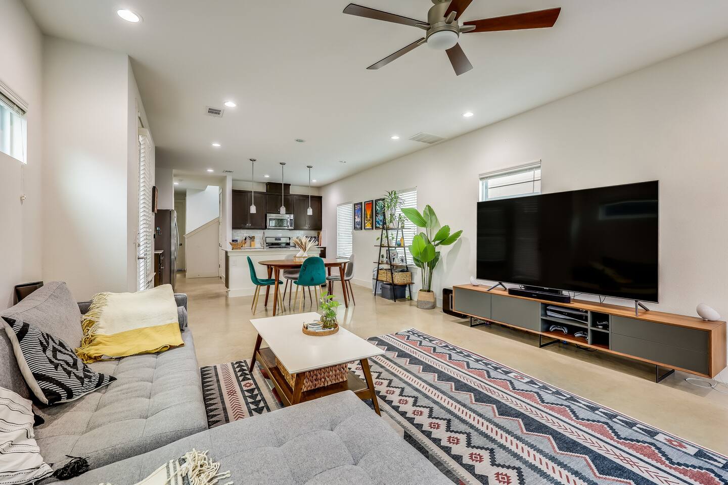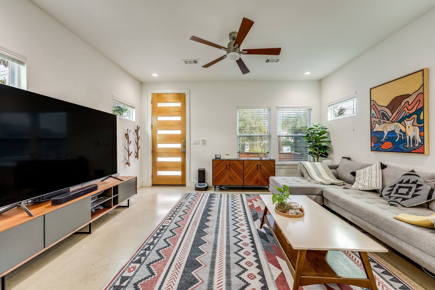 This home has been thoughtfully set up for your long term stay in East Austin: ☆ Modern home with trendy fixtures & concrete floors ☆ Private covered parking driveway ☆ Enclosed yard, perfect for our furry guests* ☆ Walking distance to Medici Coffee Shop; a great place to work! ☆ HUGE 82 " Smart HDTV; Login to use Netflix, Hulu, Prime Video, HBO, Disney+ and more! ☆ Premium tech: Sonos sound system, Roomba, Dyson vac & more! ☆ Deluxe appliances like Kitchenmaid Mixer, Ninja Air fryer & Instant Pot ☆ Multiple dedicated work spaces & 2 large monitors ☆ Primary Bedroom with deluxe Casper King size mattress, Smart TV & en suite bathroom with double sinks ☆ Second bedroom with a Casper Queen bed and Smart TV ☆ Third bedroom "flex space" with a Queen size Murphy bed & large wall mounted desk ☆ Pack n Play with deluxe mattress and Toys & books for the little ones ☆ Super fast wifi ☆ Easy self check-in *Well-behaved and house broken dogs are welcome, up to 2 dogs with an additional pet fee ($200 per pet); breed restrictions apply. Unfortunately, we cannot host cats. Please disclose if you have a pet or service animal ahead of your stay.