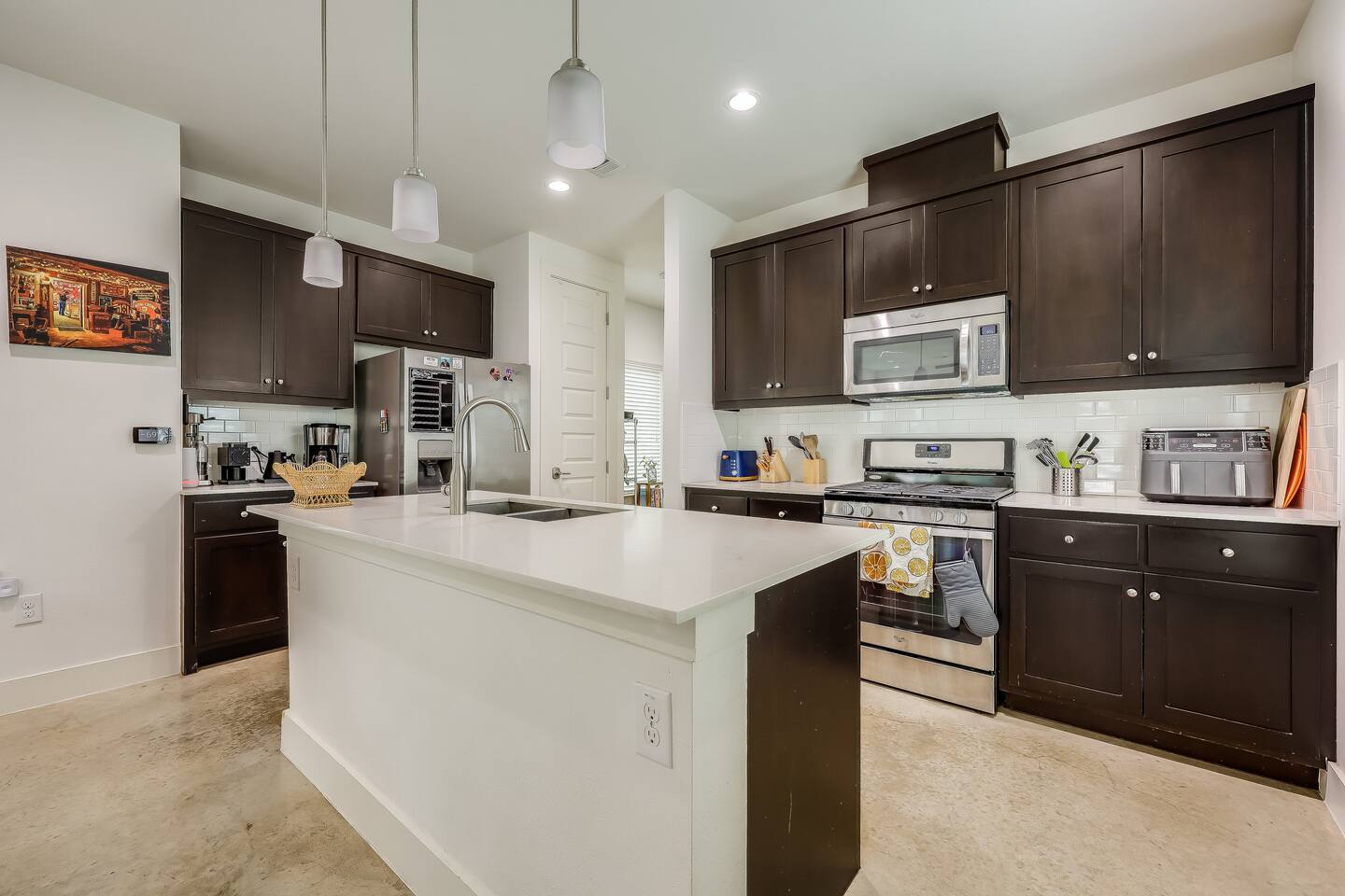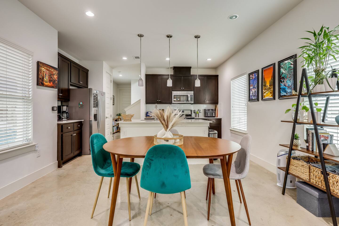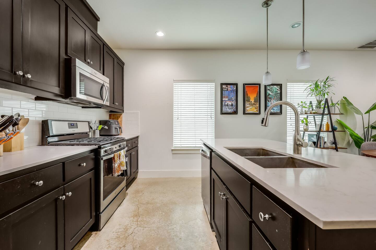 This home has been thoughtfully set up for your long term stay in East Austin: ☆ Modern home with trendy fixtures & concrete floors ☆ Private covered parking driveway ☆ Enclosed yard, perfect for our furry guests* ☆ Walking distance to Medici Coffee Shop; a great place to work! ☆ HUGE 82 " Smart HDTV; Login to use Netflix, Hulu, Prime Video, HBO, Disney+ and more! ☆ Premium tech: Sonos sound system, Roomba, Dyson vac & more! ☆ Deluxe appliances like Kitchenmaid Mixer, Ninja Air fryer & Instant Pot ☆ Multiple dedicated work spaces & 2 large monitors ☆ Primary Bedroom with deluxe Casper King size mattress, Smart TV & en suite bathroom with double sinks ☆ Second bedroom with a Casper Queen bed and Smart TV ☆ Third bedroom "flex space" with a Queen size Murphy bed & large wall mounted desk ☆ Pack n Play with deluxe mattress and Toys & books for the little ones ☆ Super fast wifi ☆ Easy self check-in *Well-behaved and house broken dogs are welcome, up to 2 dogs with an additional pet fee ($200 per pet); breed restrictions apply. Unfortunately, we cannot host cats. Please disclose if you have a pet or service animal ahead of your stay.