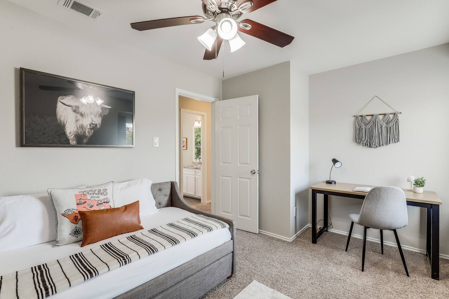 Minutes from Downtown Round Rock/ATX, Apple Campus, Tech Ridge & Georgetown, this cozy home checks all the boxes for the perfect long term stay: ✓ Cozy & stylish home in a safe & peaceful neighborhood ✓ Dog friendly with enclosed backyard ✓ Multiple dedicated work spaces ✓ Tons of nearby restaurants & activities ✓ Ideally located, near everything in Round Round Austin & Georgetown!