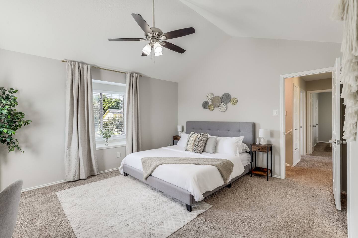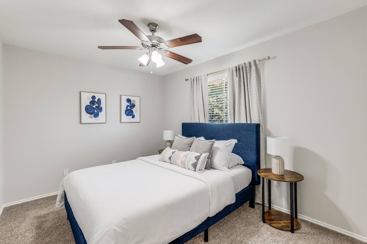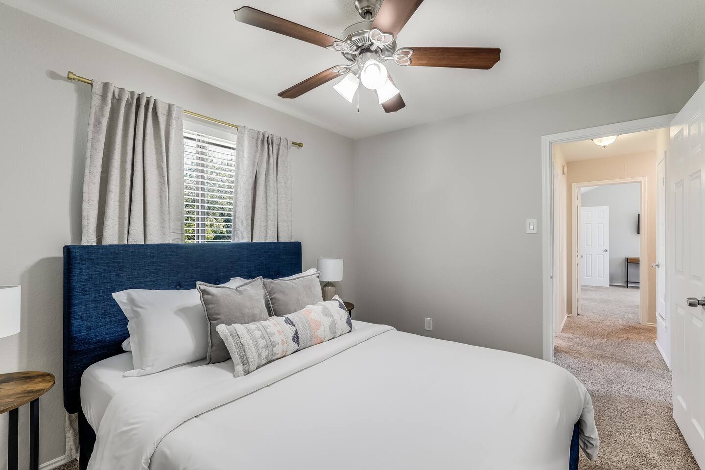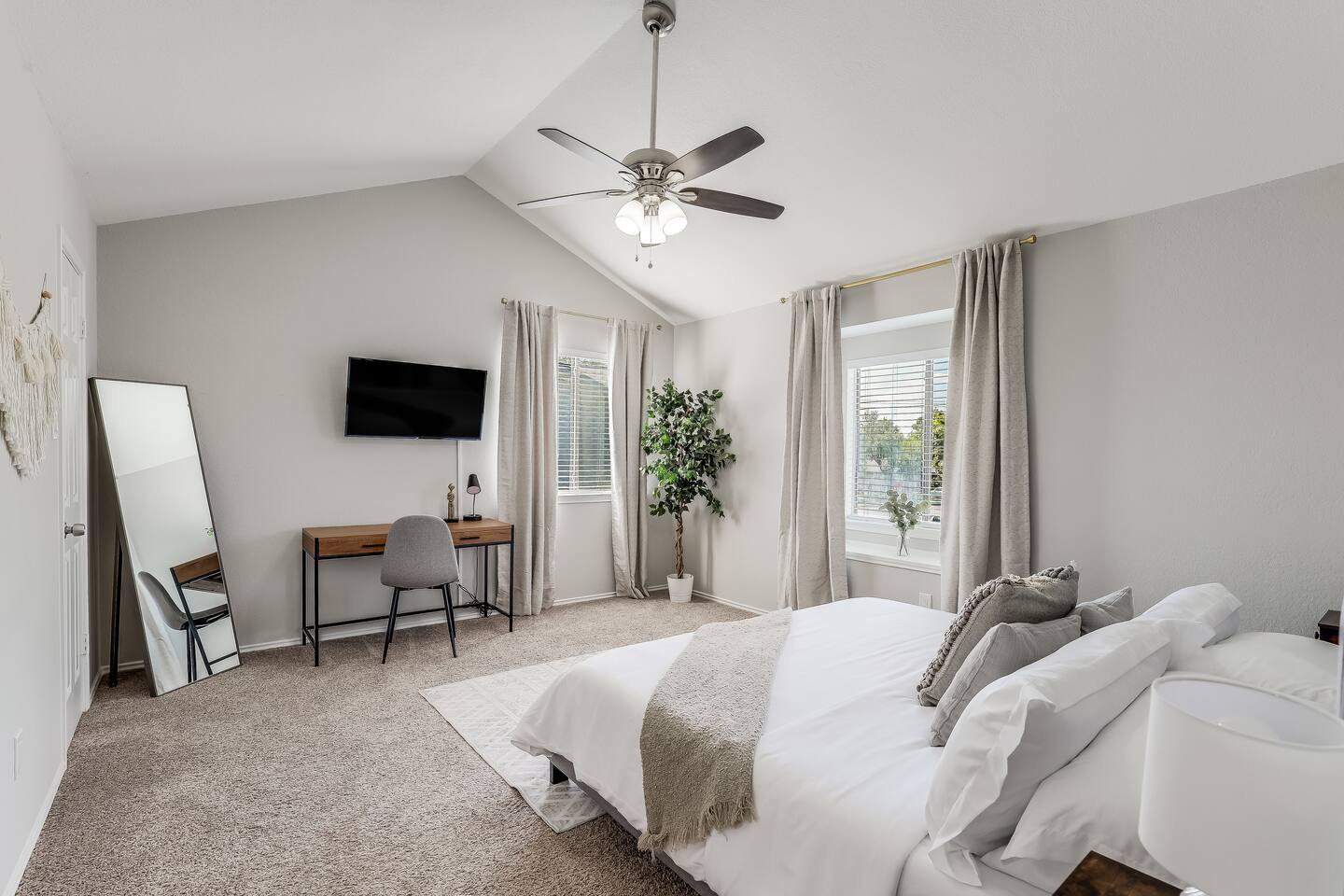 This home has been thoughtfully set up for your long term stay: ☆ Split-level home with bedrooms on the second floor; lots of privacy! ☆ Fast 50amp EV charging (bring your own charger/adapter)* ☆ Large backyard, perfect for our furry guests** ☆ Outdoor seating area with fire pit, corn hole & giant Jenga! ☆ Two large dedicated work spaces; perfect for digital nomads & corporate travelers! ☆ Primary Suite with King bed (sleeps 2), large closet space & en suite bathroom with double sinks ☆ Second bedroom with a Queen bed (sleeps 2) ☆ Third bedroom with Twin Daybed and Twin Trundle (sleeps 2) ☆ Multiple ways to make coffee, including a Nespresso machine & pods ☆ Super fast wifi for all of your work from home needs ☆ Multiple Smart HDTVs; Login to use Netflix, Hulu, Prime Video, HBO, Disney+ and more! ☆ Pack n Play with deluxe mattress ☆ Plenty of books and games for all ages ☆ Classic Arcade Game console ☆ Easy self check-in *In order to keep our rental costs as low as possible for our long term guests, we have implemented a $250 cap on electricity for stays over 30 days only. In the heat of the summer with normal AC use, the electricity costs around $200-$225. Therefore, reasonable AC use/EV charging should not result in a bill above $250, but if it does, guests will be charged for the additional usage. **Well-behaved and house broken dogs are welcome, up to 2 dogs with an additional pet fee ($200 for 1, $300 for 2). Unfortunately, we cannot host cats. Please disclose if you have a pet or service animal ahead of your stay.