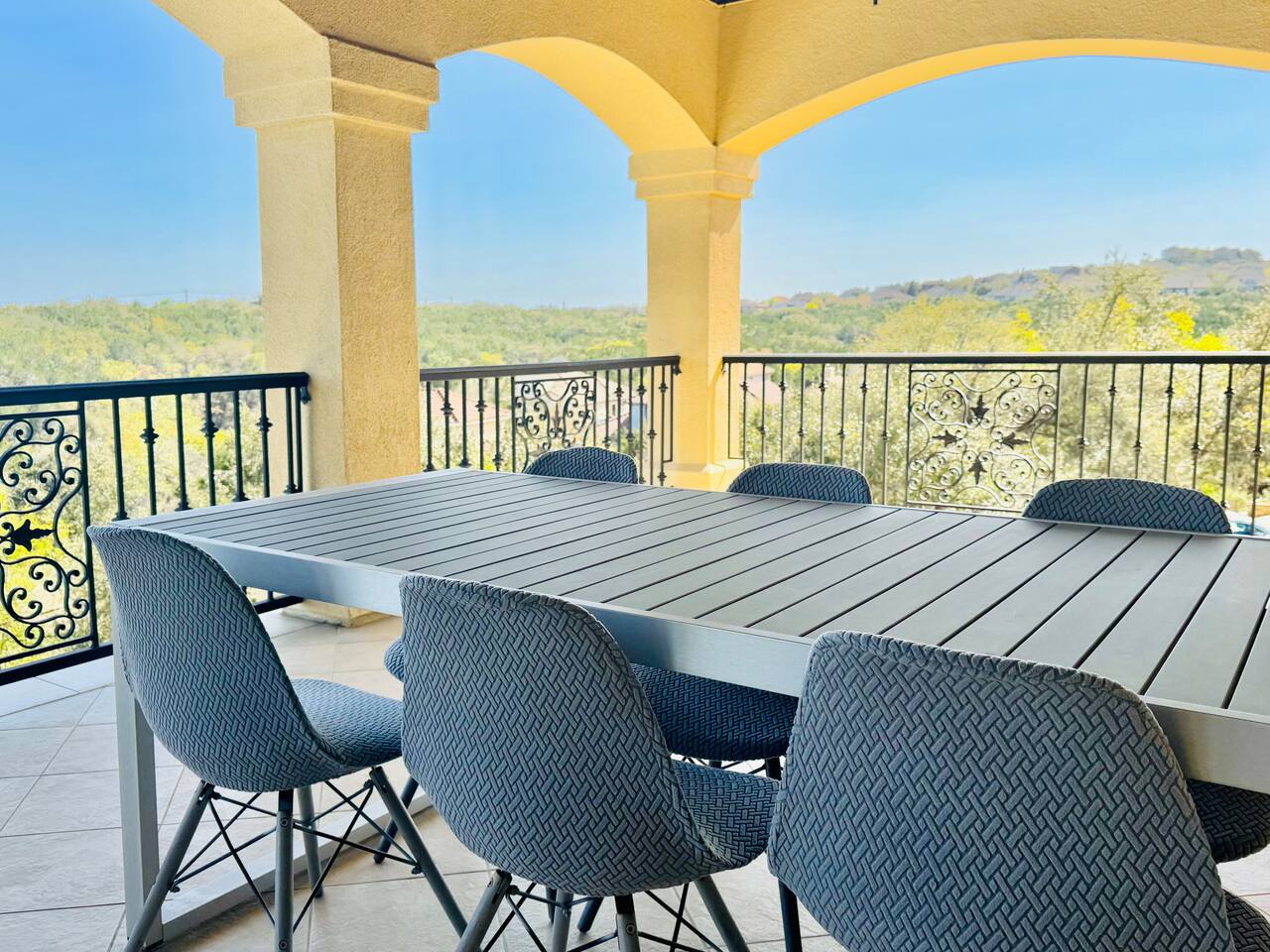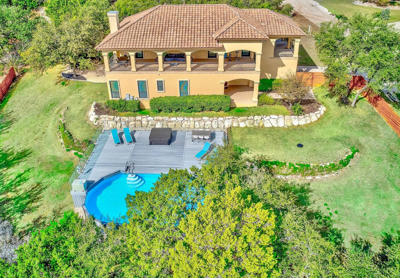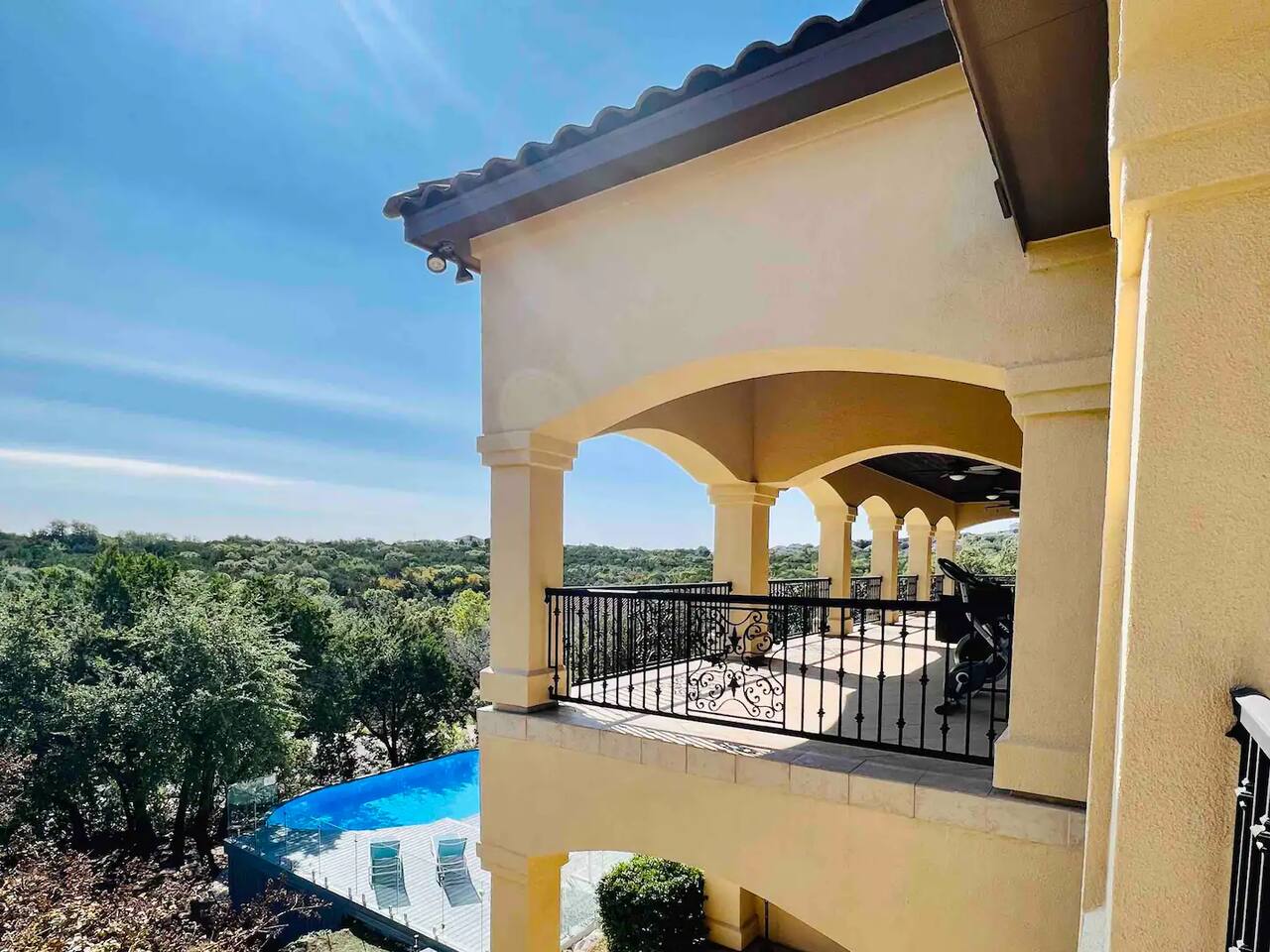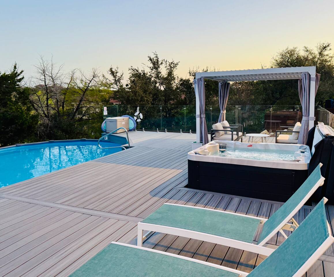 **The pool is not heated, but the spa is 😁 Monthly special offers available- please reach out for details. ☆ HUGE private gated villa with gorgeous views of the Texas Hill Country ☆ Pool, hot tub and multiple outdoor dining areas. Perfect for all seasons! ☆ Wrap around balcony with exercise bikes, yoga mats and tons of comfortable seating ☆ Primary upstairs suite with King bed (sleeps 2) & Full sized Murphy bed (sleeps 2) ☆ Second bedroom with one Full bed (sleeps 2) ☆ Third bedroom with two Queen beds (sleeps 4) ☆ Fourth bedroom with one Queen bed (sleeps 2) ☆ Two dedicated work spaces ☆ Plenty of indoor and outdoor games available (Corn-hole, badminton, Catan, Ticket to Ride, Connect Four, Dominoes, etc.) ☆ Pack n Play, toddler air mattress, high chair, toys & books for the little ones ☆ Fully stocked kitchen & complimentary coffee/tea ☆ Fast wifi (up to 400 mbps) ☆ Three Smart HDTVs w/ Netflix, Hulu, Disney+, ESPN+ and more! ☆ Cordless vacuum ☆ On-site parking (4 driveway spaces, 6 street spaces) with a huge driveway that can accommodate your RV or boat ☆ Easy self check-in