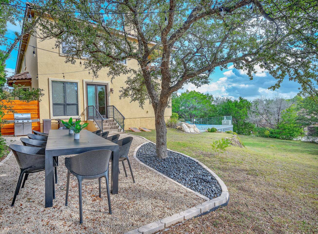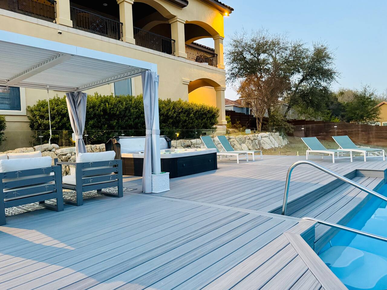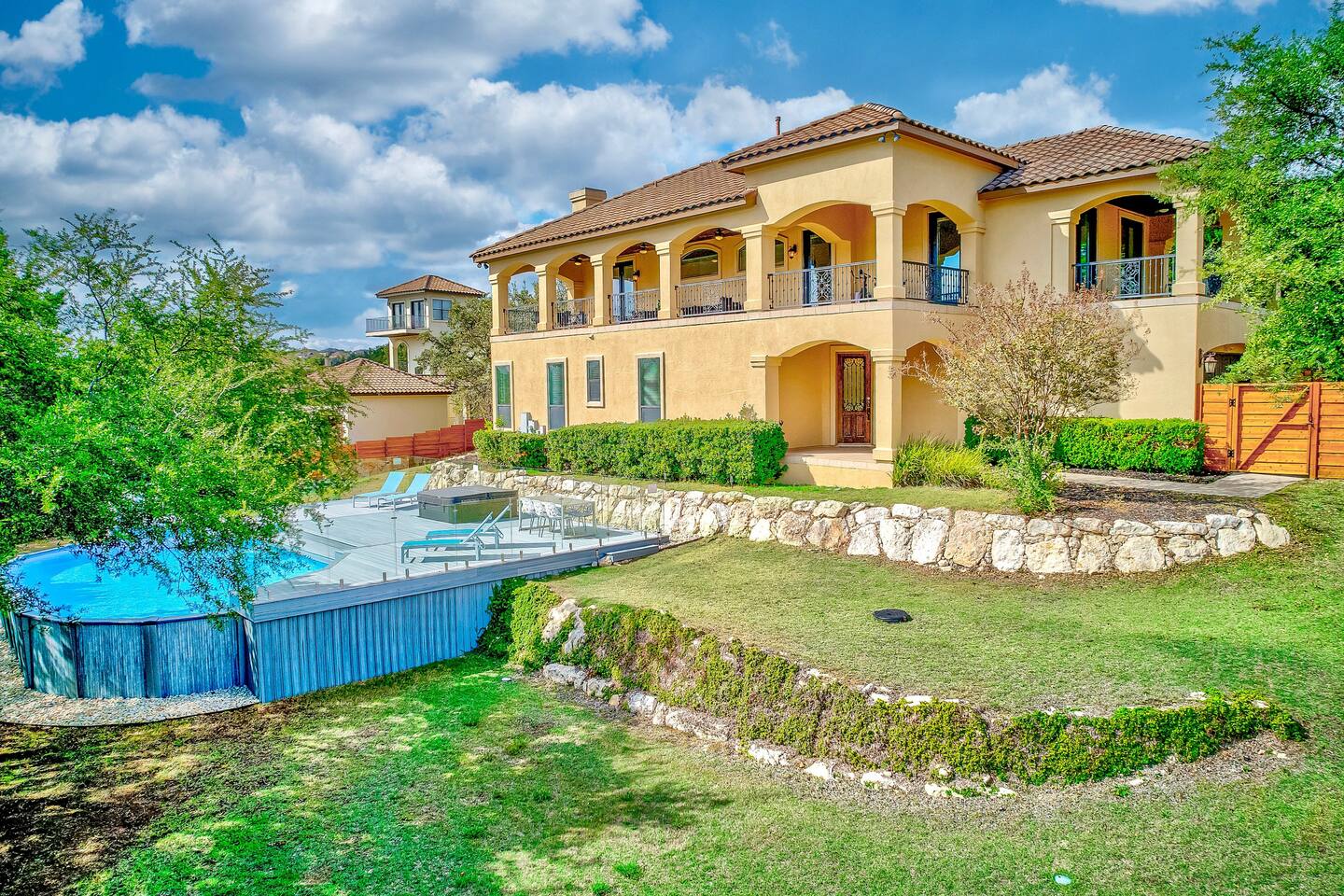 **The pool is not heated, but the spa is 😁 Monthly special offers available- please reach out for details. ☆ HUGE private gated villa with gorgeous views of the Texas Hill Country ☆ Pool, hot tub and multiple outdoor dining areas. Perfect for all seasons! ☆ Wrap around balcony with exercise bikes, yoga mats and tons of comfortable seating ☆ Primary upstairs suite with King bed (sleeps 2) & Full sized Murphy bed (sleeps 2) ☆ Second bedroom with one Full bed (sleeps 2) ☆ Third bedroom with two Queen beds (sleeps 4) ☆ Fourth bedroom with one Queen bed (sleeps 2) ☆ Two dedicated work spaces ☆ Plenty of indoor and outdoor games available (Corn-hole, badminton, Catan, Ticket to Ride, Connect Four, Dominoes, etc.) ☆ Pack n Play, toddler air mattress, high chair, toys & books for the little ones ☆ Fully stocked kitchen & complimentary coffee/tea ☆ Fast wifi (up to 400 mbps) ☆ Three Smart HDTVs w/ Netflix, Hulu, Disney+, ESPN+ and more! ☆ Cordless vacuum ☆ On-site parking (4 driveway spaces, 6 street spaces) with a huge driveway that can accommodate your RV or boat ☆ Easy self check-in