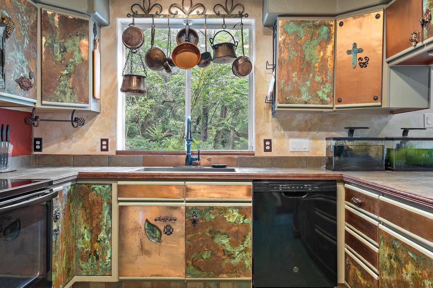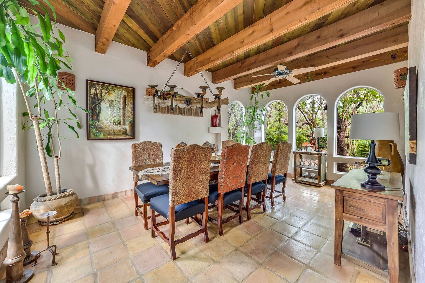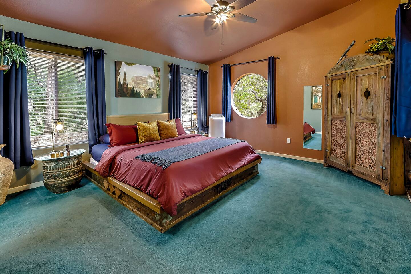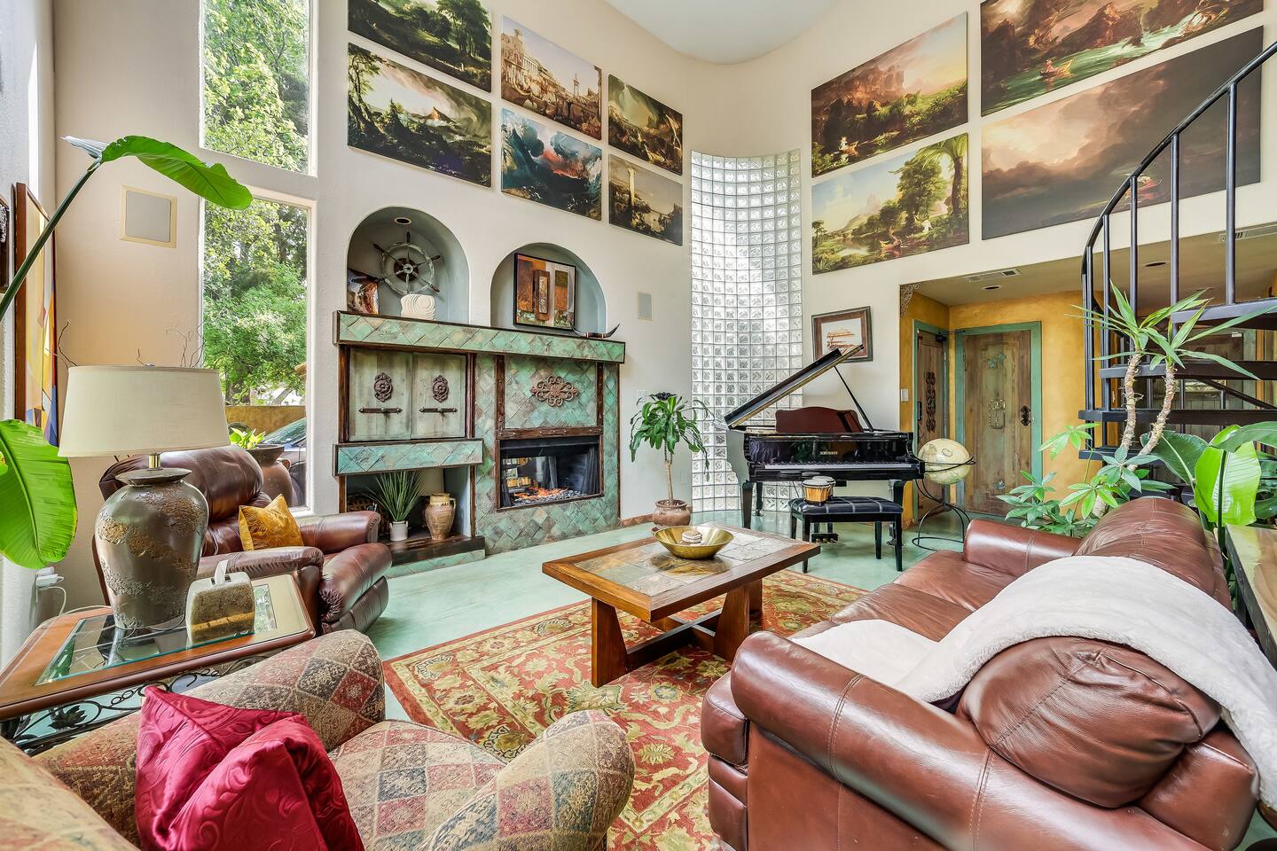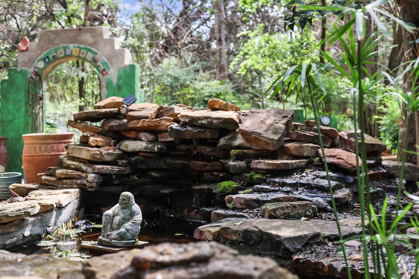 Villa De Oaks is a spacious sanctuary, featuring three bedrooms, two full bathrooms, and a convenient powder room. This unique oasis checks all the boxes for the perfect vacation: ☆ Unique Tuscan-style home nestled in the Texas Hill Country, 5 minutes from Lake Travis! ☆ Beautiful gated property with lush greenery, gorgeous architecture, multiple serene water features & multiple lounging areas ☆ Exclusive deals on chartered boat rentals for all of our guests (reservations needed) ☆ Premium outdoor amenities such as an XL hot tub (6-9 people) and TWO fire pits with plenty of seating ☆ Baby Grand Piano, bongos & a tambourine for our musical guests ☆ Over 40 unique paintings & sculptures by local artists ☆ Game Room with reclining couch, Smart TV and PS and XBOX gaming consoles ☆ Primary bedroom with King bed (sleeps 2) & en-suite bathroom (upstairs) ☆ Second bedroom with one Queen bed (sleeps 2) & en-suite bathroom (upstairs)* ☆ Huge downstairs bunk room with 2 sets of full size bunk beds (sleeps 4-8) & kitchenette ☆ On-site parking with a large lot that can accommodate jet skis or a boat** ☆ Huge lot with tons of mature oaks, perfect for relaxation or exploring ☆ Hassle-free self check-in *Bunk room guests will have easy access to the downstairs powder room, but will have to share the showers with the upstairs ensuite guests. **Standard height boat trailers only. Lifted trucks or taller boat trailers may not clear the oak trees on the property. We are not responsible for damages to boats, trailers or vehicles. Street parking is available if your boat won't clear the trees :)